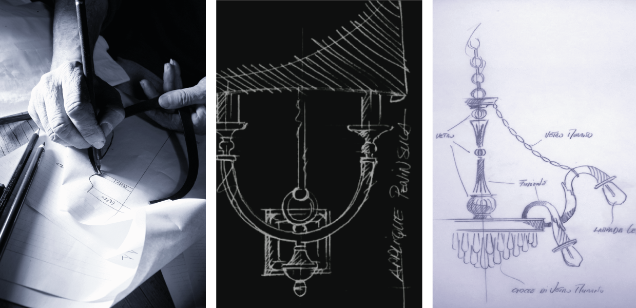 To ensure customer satisfaction, our manufacturing techniques are based on advanced technological expertise, as well as traditional performances. We manufacture lighting with the latest designs, computerized technology and handmade quality. From the client’s sketch to the final product.